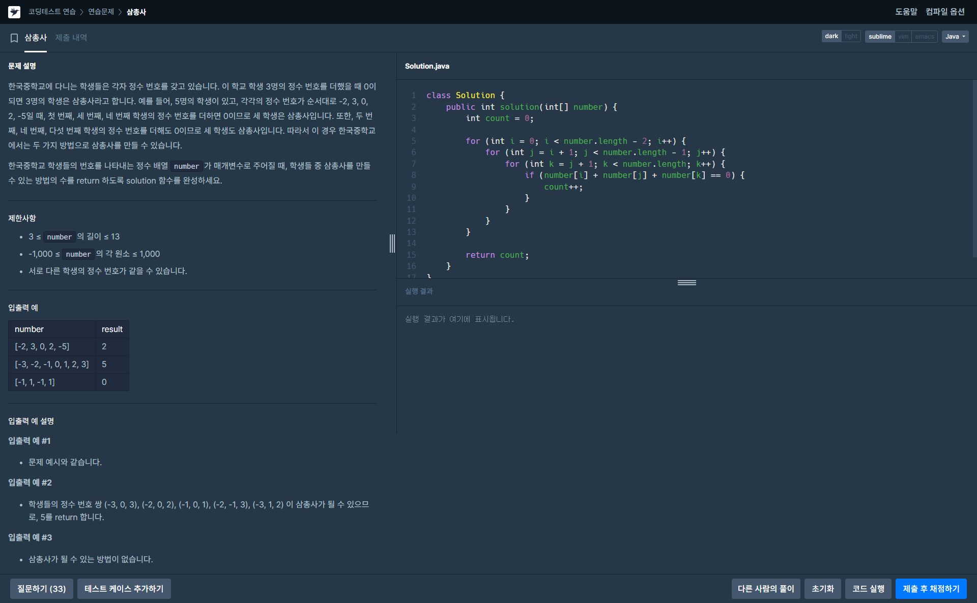 Java 삼총사 정답입니다.