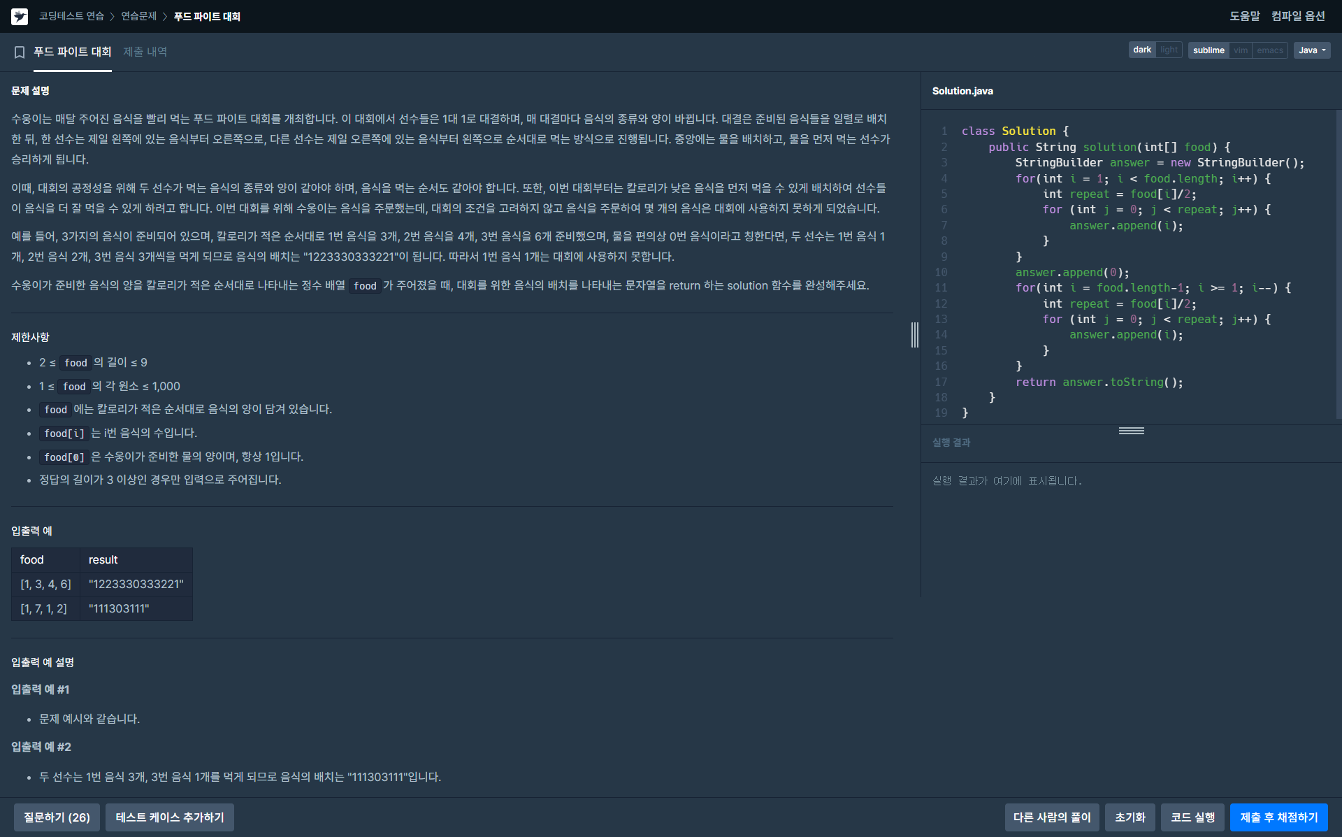 Java 푸드 파이터 대회 정답입니다.