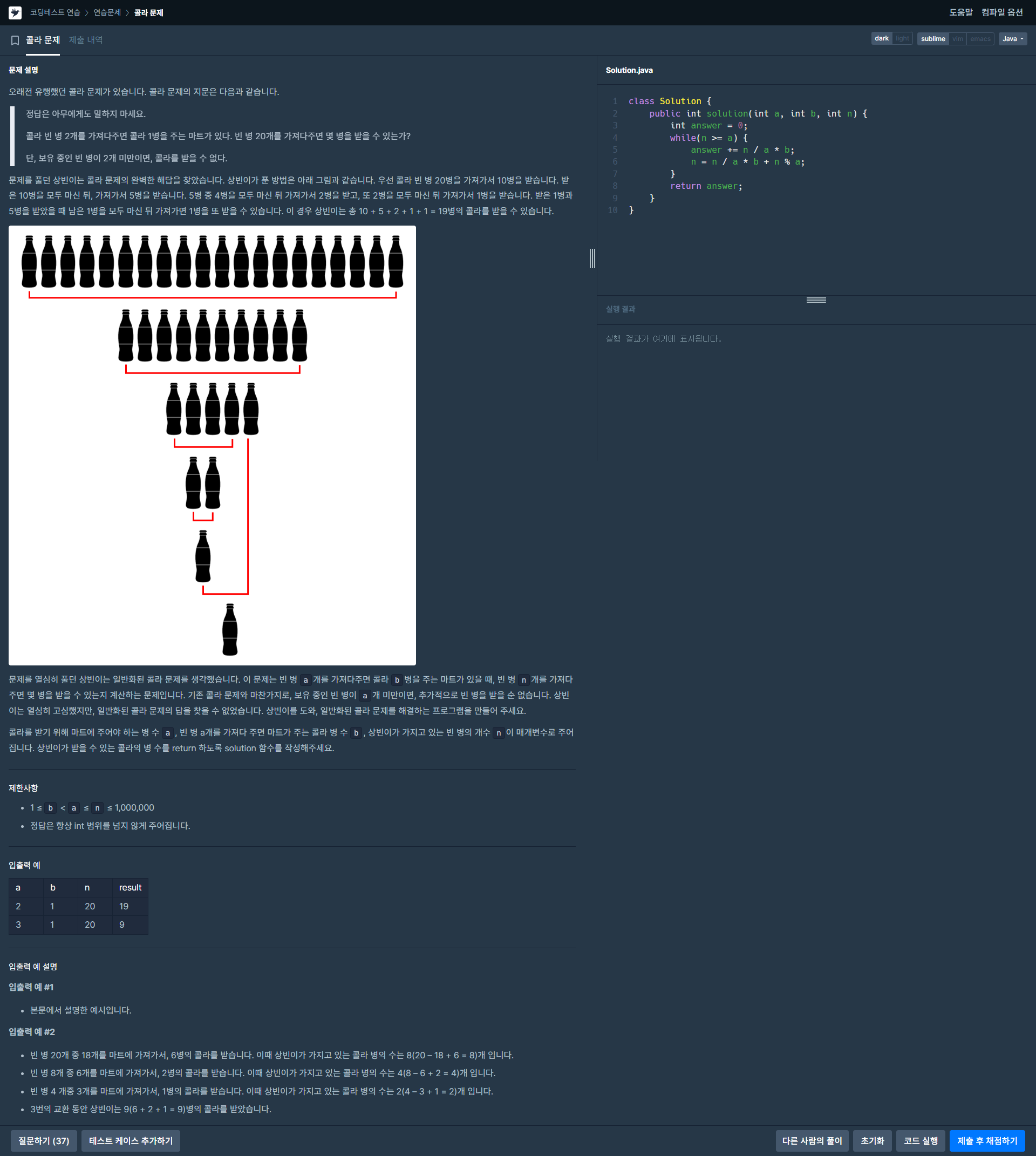 Java 콜라 문제 정답입니다.