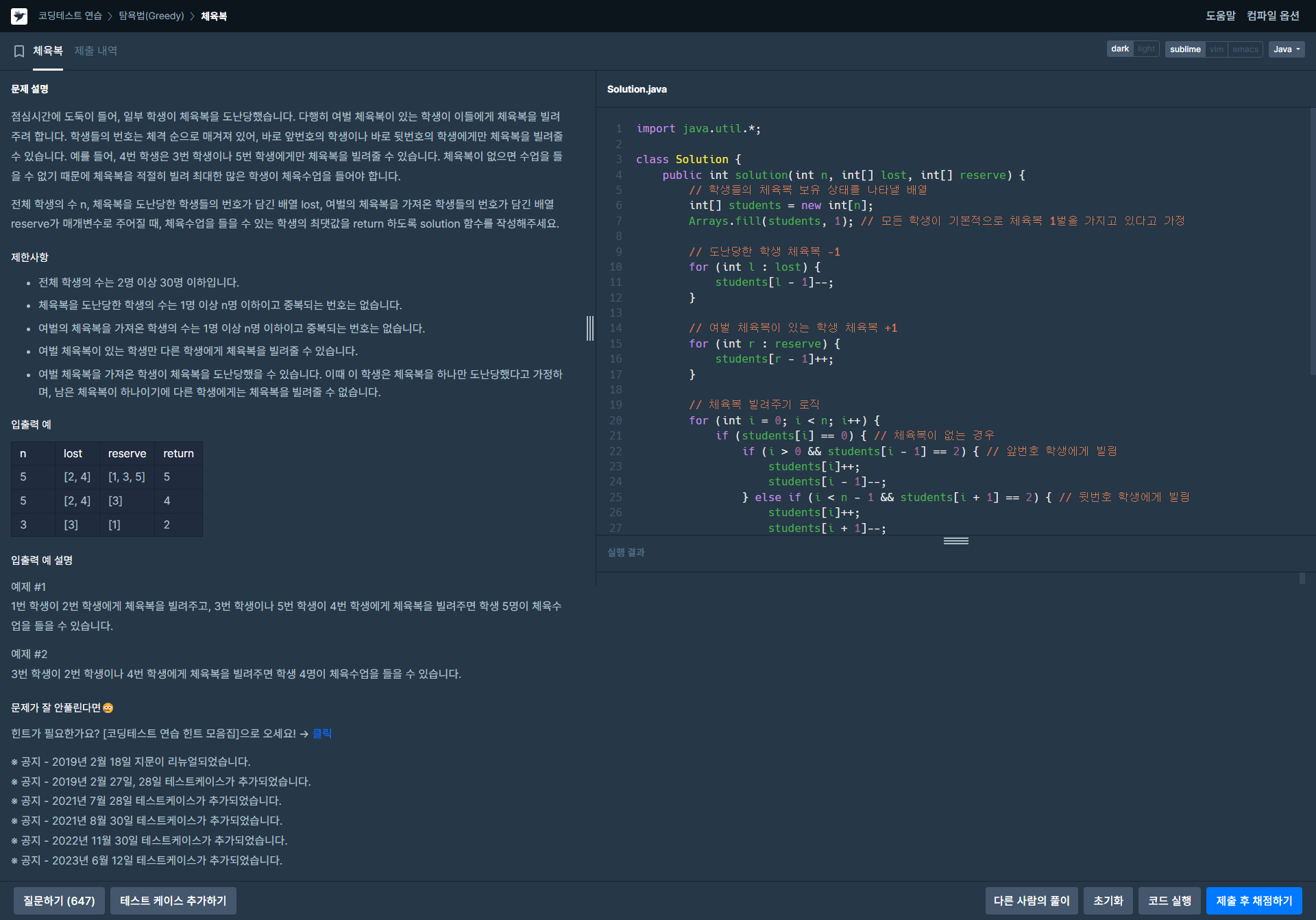 Java 체육복 정답입니다.